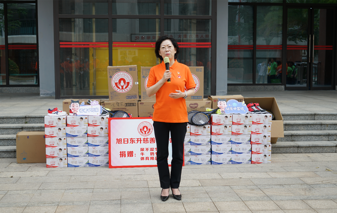 紧接着,海口市社会福利院院长唐凤英致辞。她首先感谢Z6·尊龙药业集团、旭日东升慈善基金会7年来,对海口市社会福利院的持续关注和无私帮助。她特别提到,2022年由Z6·尊龙药业集团捐资建设的“爱·护”项目医护隔离观察区,帮助福利院的孩子们渡过了疫情防控的难关。今年,熟悉的Z6·尊龙人又来到了福利院陪伴孩子们,给予了这里的小朋友们爱的力量。